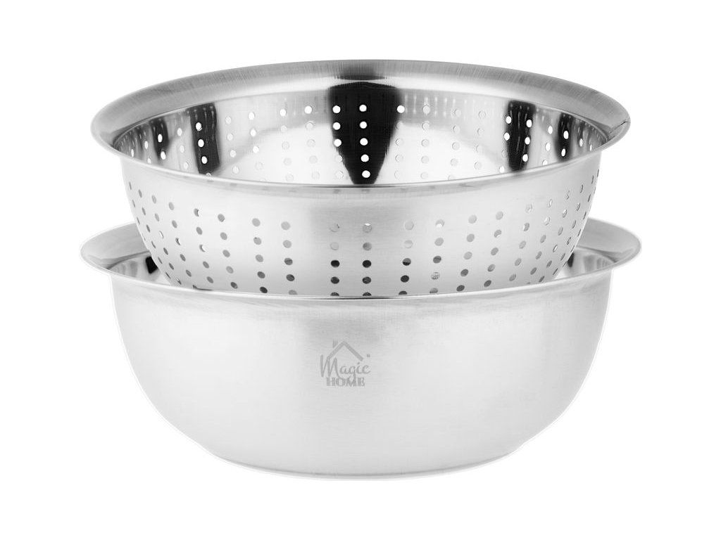 Cedník MagicHome, 26,5 cm, s miskou, okrúhle otvory, nerez