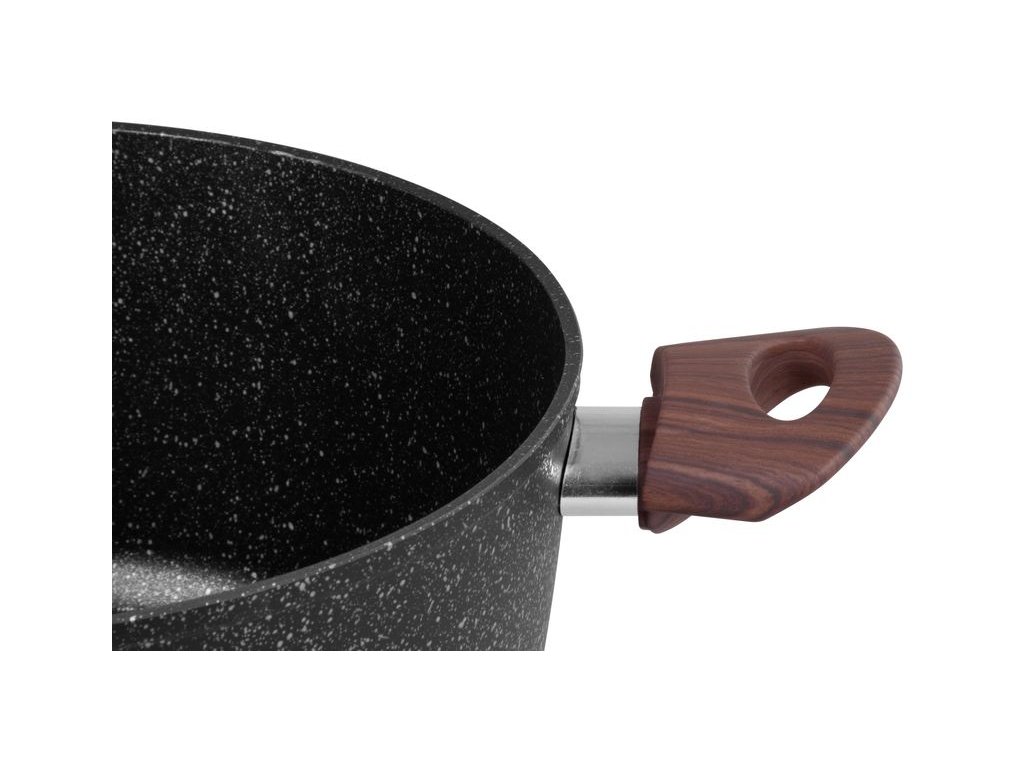 Ak si potrpíte na kvalitné kuchynské riady, tento hrniec je pre Vás ako stvorený. Hrniec s pokrievkou MagicHome Black Marble Line je vyrobený zo zliatiny hliníka s nepriľnavým povrchom a 3-vrstvovým mramorovým náterom. Má 3 mm indukčné dno, ktoré šetrí energiu. Rukoväť obsahuje drevený náter s ochranou proti plameňu. Hrniec je vhodný na všetky typy sporákov : indukcia, elektrika, plyn, sklokeramika a halogén a je tiež vhodný do umývačky riadu. Nevhodný do rúry. Je šetrný k životnému prostrediu, neobsahuje PFOA, PFOS, VOC, PB ani CD. Objem: 5,9 litrov.