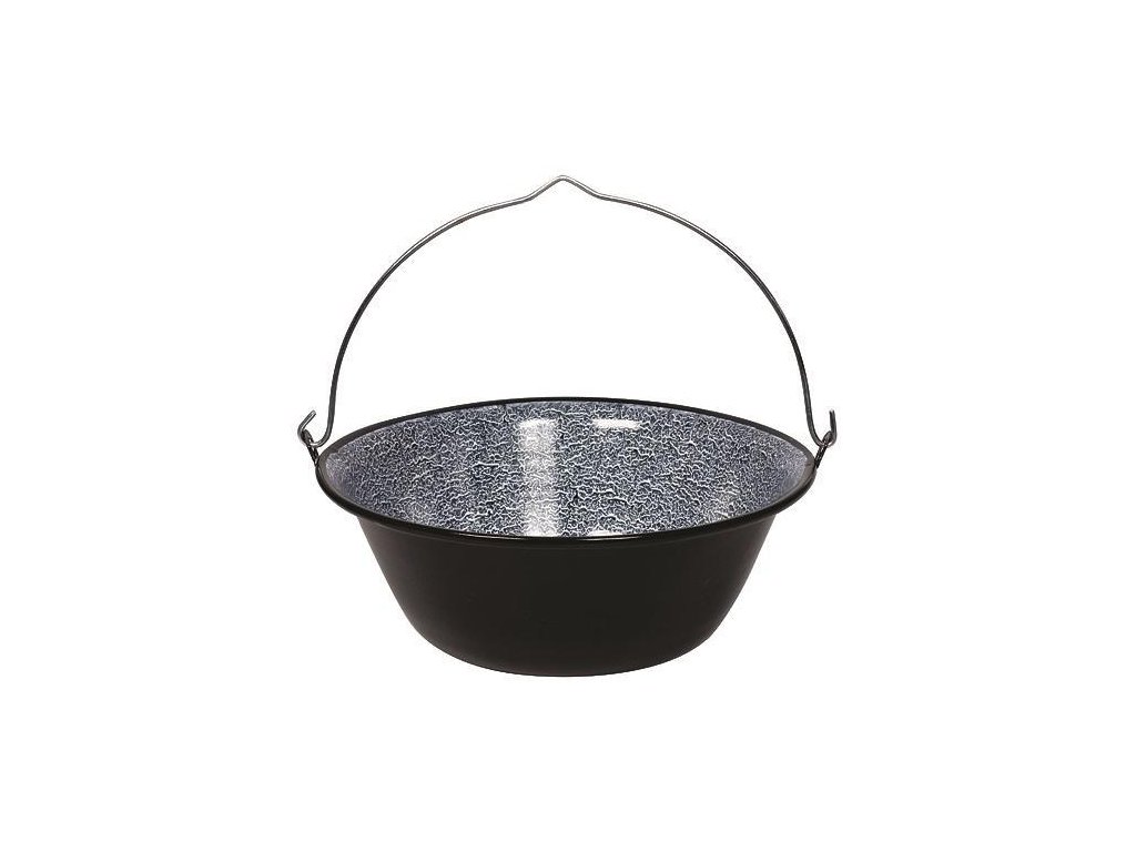 Kovový kotlík 25 lit, smaltovaný na guľáš s pozinkovaným kovovým držadlom. Vhodný na prípravu jedla pri táborení v prírode, pri vode alebo v domácnosti.Dodatočné parametre