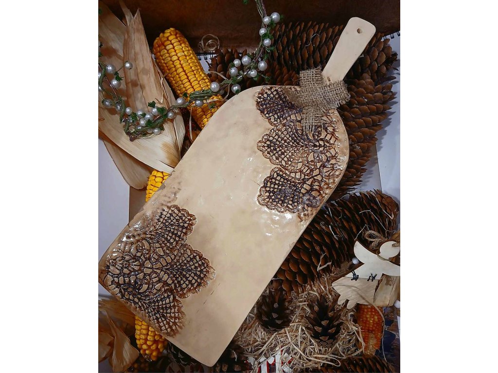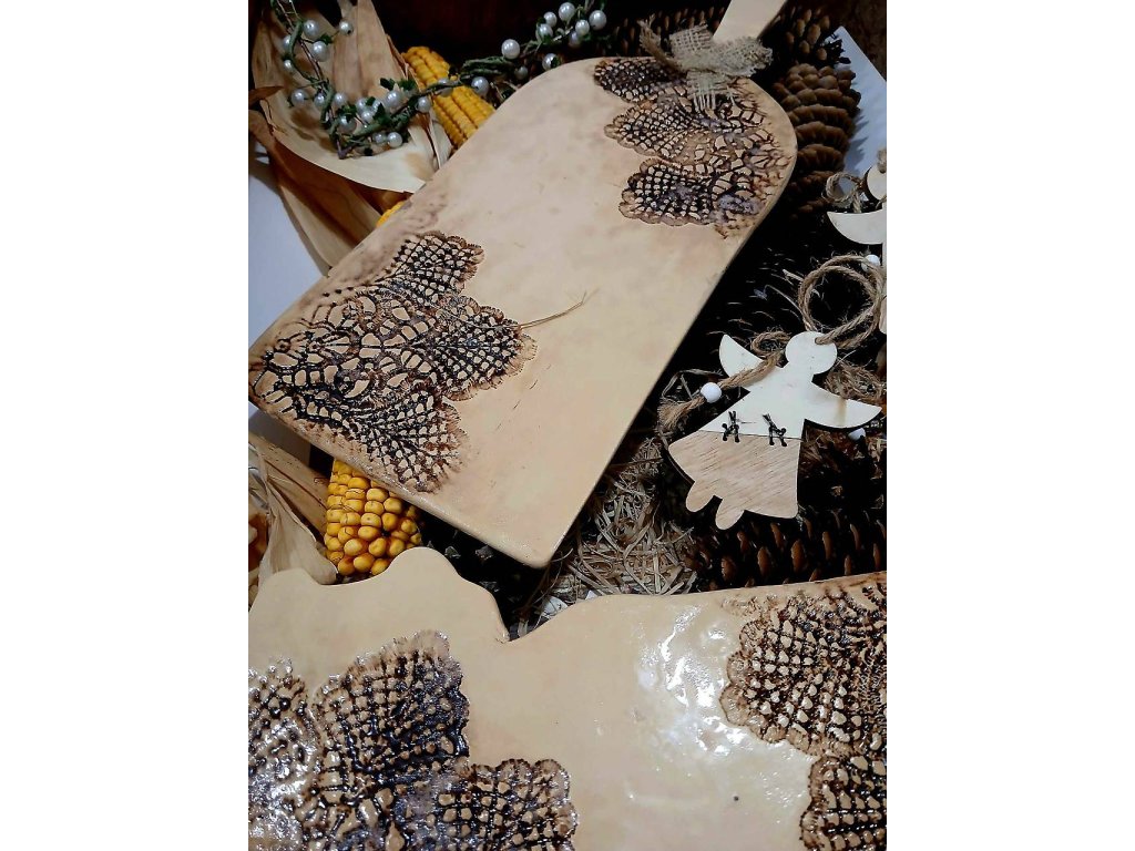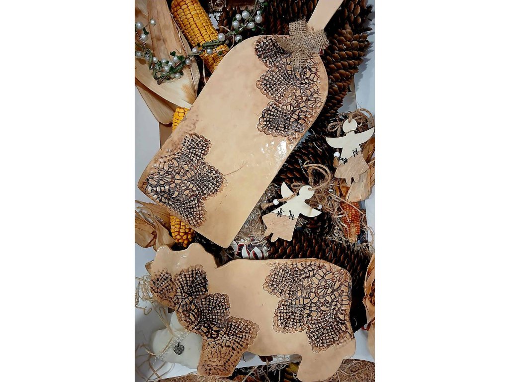 Na príprave tohto výrobku som použila kvalitnú keramickú hlinu. Po dokonalom vyschnutí putuje výrobok do keramickej pece na prvý prežach pri teplote od 900 st. Celzia. Následne sa na neho nanáša glazúrka a potom pokračuje cestou druhého výpalu do pece už pri vyššej teplote od 1000 s. Celzia.