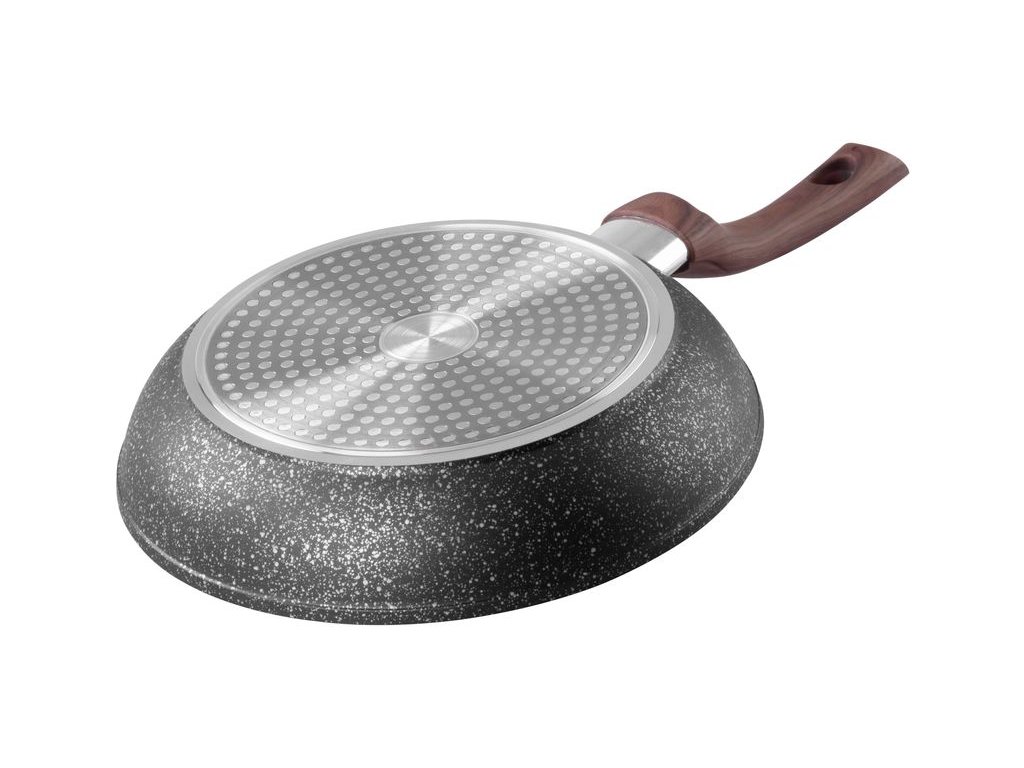 Ak si potrpíte na kvalitné kuchynské riady, táto panvica je pre Vás ako stvorená. Panvica MagicHome Black Marble Line je vyrobená zo zliatiny hliníka s nepriľnavým povrchom a 3-vrstvovým mramorovým náterom. Má 3 mm indukčné dno, ktoré šetrí energiu. Rukoväť obsahuje drevený náter s ochranou proti plameňu. Panvica je vhodná na všetky typy sporákov : indukcia, elektrika, plyn, sklokeramika a halogén a je tiež vhodná do umývačky riadu. Nevhodná do rúry. Je šetrná k životnému prostrediu, neobsahuje PFOA, PFOS, VOC, PB ani CD. Priemer: 24 cm.