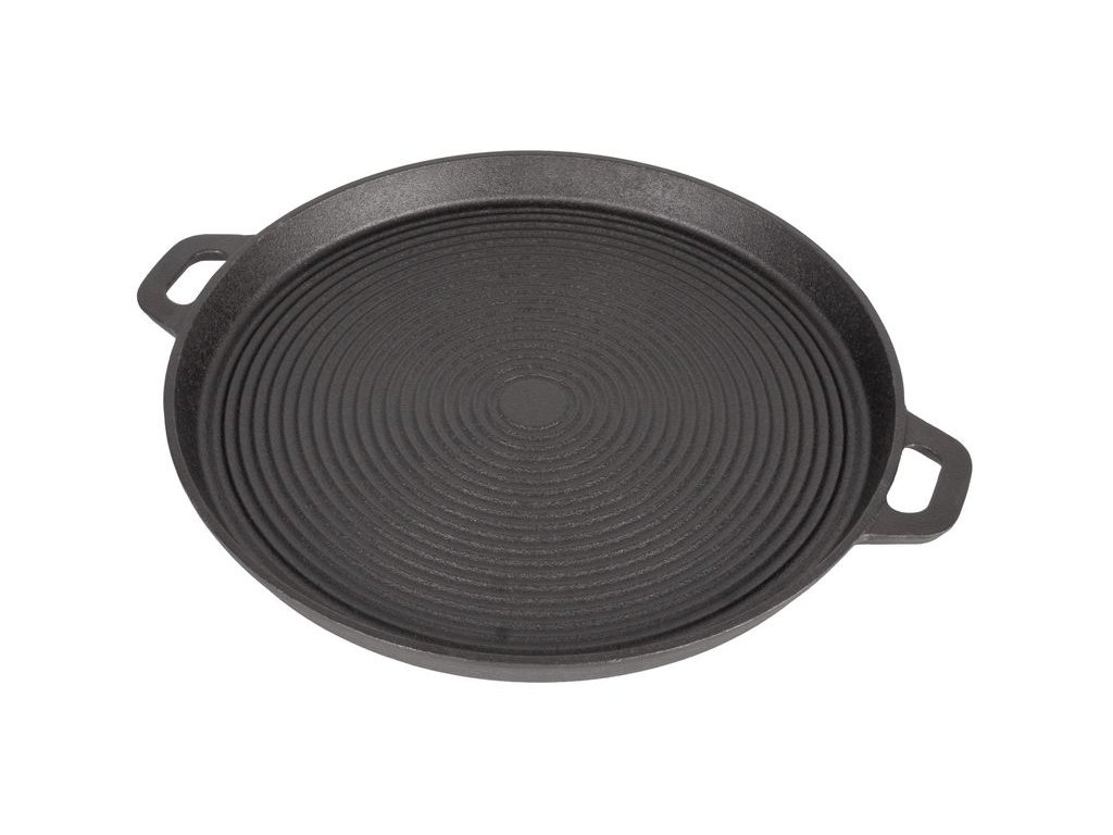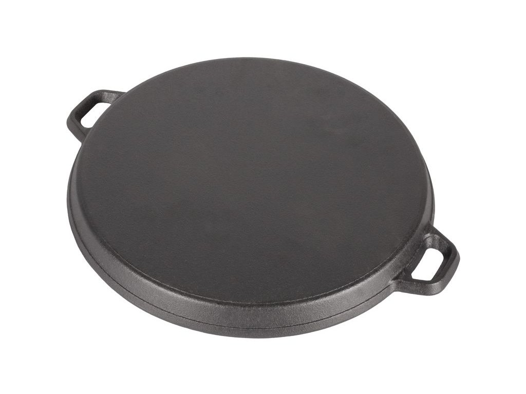 Obojstranná grilovacia platňa je vyrobená z liatiny. Pruhovaná strana je vhodná na grilovanie mäsa, rýb, klobás, špekačiek. Hladká strana na pečenie zeleniny, príloh a iných pochutín. Okraj je vyvýšený a zabraňuje odtekaniu masti na gril. Platňa má 2 pevné rukoväte pre lepšiu manipuláciu. Používanie je veľmi jednoduché. Na platňu nalejte trochu oleja podľa potreby a umiestnite Vami požadované jedlo. Po príprave nechajte platňu vychladnúť a dôkladne ju umyte. Môže sa používať aj na plynovom sporáku alebo v rúre.