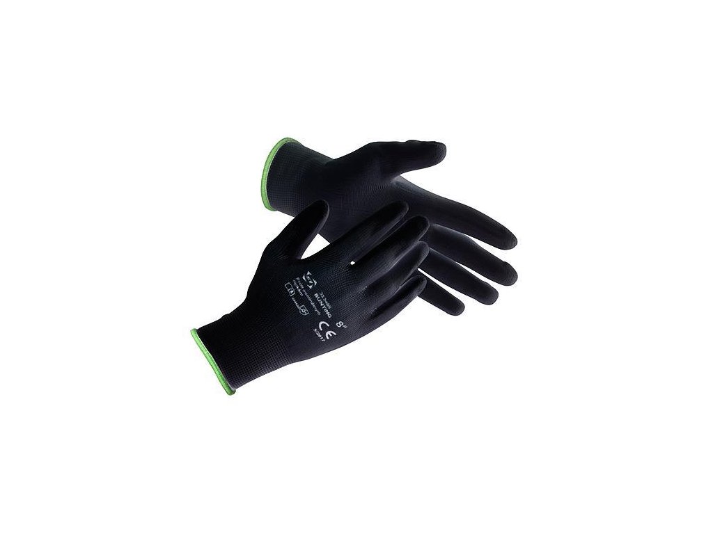 POPIS: - Rukavice zhotovené z bieleho a cierneho nylonového úpletu bez švov. - Dlan a prsty potiahnuté tenkou vrstvou bieleho, resp. cierneho polyuretánu. - Pružný úplet na zápästí. Balenie obsahuje 12 párov rukavíc. POUŽITIE: - Rukavice sú urcené k ochrane proti MINIMÁLNYM rizikám v suchom prostredí. - Sú urcené hlavné pre nenárocné práce v záhrade a v domácnosti pre upratovanie.Dodatočné parametre