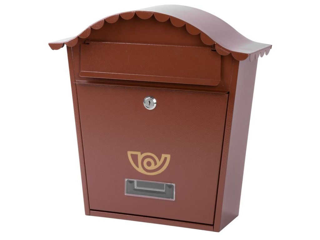 Elegantná poštová schránka v hnedej farbe. Obsahuje časť na letáky. Rozmery: 37x14x37 cm.