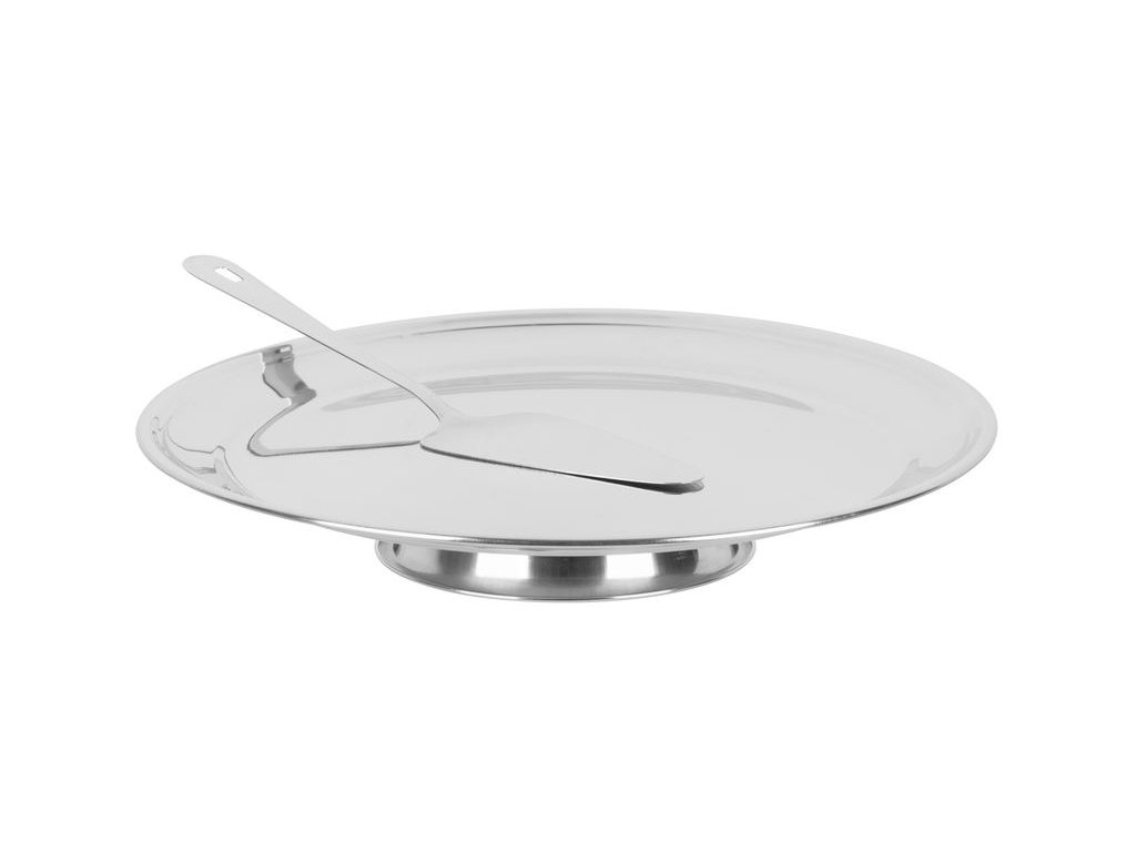 Krásny servírovací stojan na tortu s priemerom 32 cm s podávačom dĺžky 26,5 cm nesmie chýbať v žiadnej domácnosti. Je vyrobený z nerezu.